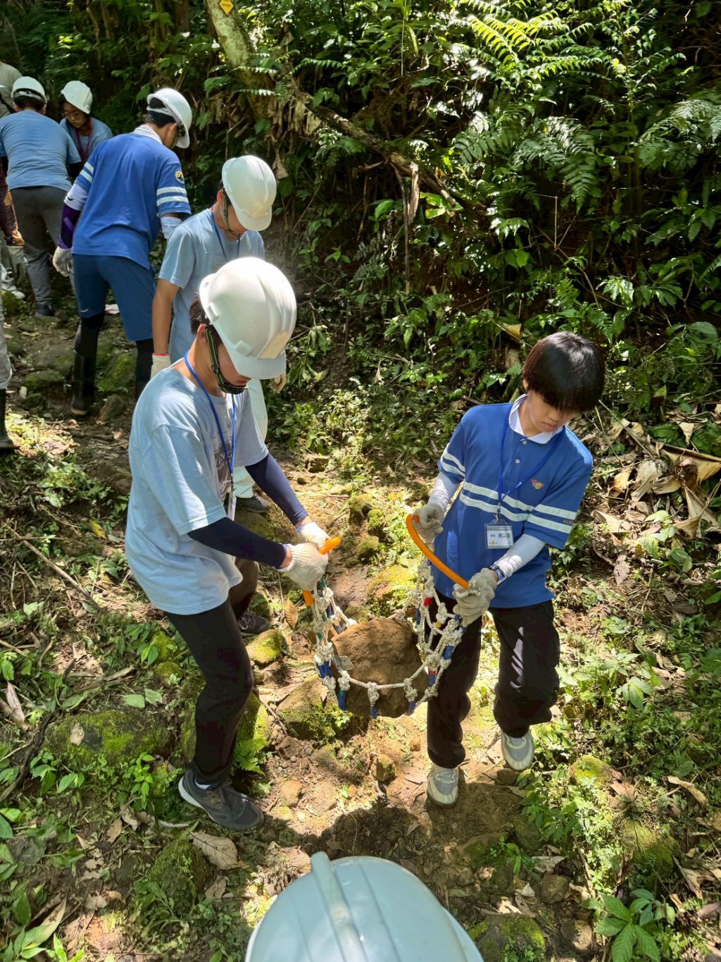 旅程尾聲,我們投入步道修建。陽光灑落樹梢,大家合力搬運石頭,汗水與笑聲交織,那時候,石塊似乎不再沉重,因為我們知道,每一次的擺放,都是對土地的承諾。看著小路逐漸成形,我們心中湧起的是自豪與感動——這不只是修築步道,而是為山林留下一條安全又溫柔的痕跡。